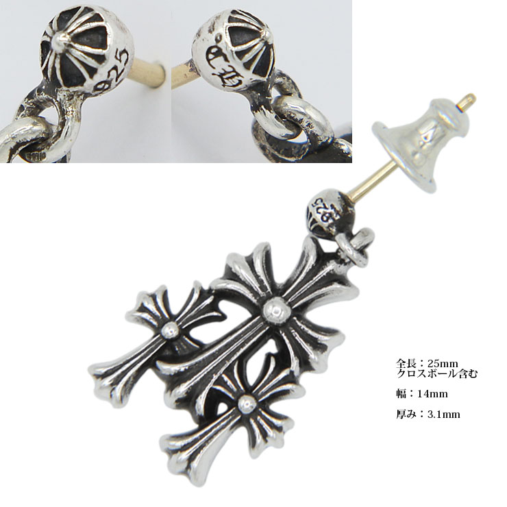 クロムハーツの大人気のデザインCHクロスベビーファットチャーム、CHクロススタッドを重ねた、デザイン性が高いピアス。