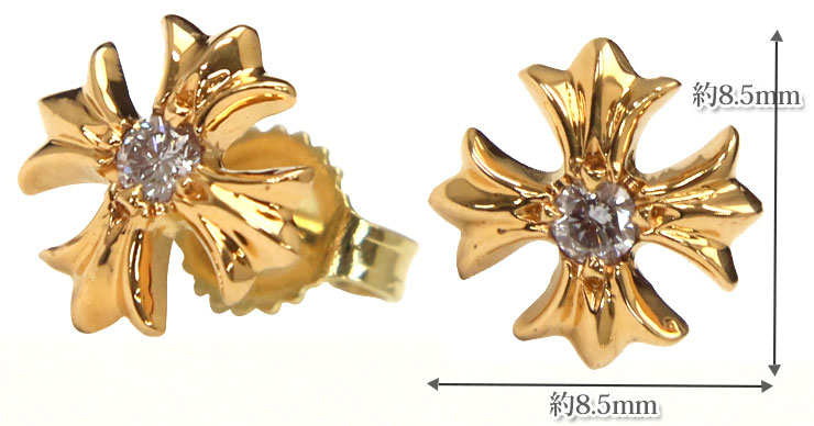 全身を22Kゴールドで作り上げた、ゴージャスなピアスで、CHプラスの中央にはダイヤモンドが1石埋め込まれており、美しく輝くダイヤモンドも印象的です。